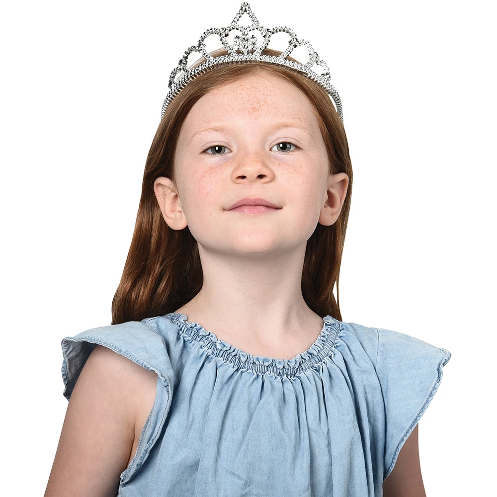 Silver Tiaras (One Dozen) by CarnivalSource.com! Every princess deserves a tiara and the economical price on these shiny silver crowns means you can please more than one princess. These crowns are also perfect for pageants or a Night to Shine event. Stock up on all your Princess party needs at CarnivalSource.com. We have the sparkle, bling, glitter, and of course the pink you need to make little princesses happy. With a wide selection of costume accessories and favors we have exactly what a princess needs. Visit our princess party theme section to find novelty toys, stationery items, party favors, party decorations, supplies, games and more all with a princess theme. Find more great items like this in our Tiaras category here at CarnivalSource.com. Silver Tiaras by CarnivalSource.com are perfect for any princess! These plastic tiaras have a shiny silver metallic finish and fit most children preschool through high school. With a 3 1/2 inches height, they are appropriate for ages 3 and up. Buy a dozen and get free shipping on your order from our Missouri warehouse within one business day. Make your princess party sparkle with these tiaras and more from our princess party theme section. Shop now at CarnivalSource.com for all your royal needs!