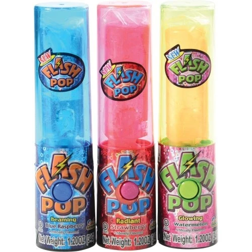 Flash Pop (Bag of 12) by CarnivalSource.com! Always find your way at night while you are eating this lollipop. Just press a summary and your lollipop will illuminate. Find more great items like this in our Party Candy category here at CarnivalSource.com. Flash Pop (Bag of 12) by CarnivalSource.com is the perfect companion for nighttime fun. This 5″ tall container includes 1.20 oz candy in three delicious flavors – Strawberry, Blue Raspberry, and Watermelon – and the battery is included, though not replaceable. All ingredients are certified Kosher (Pareve), and it’s safe for children ages 3 and up. Plus, it ships from our Missouri warehouse within one business day! Get your Flash Pop now in our Party Candy category at CarnivalSource.com.
