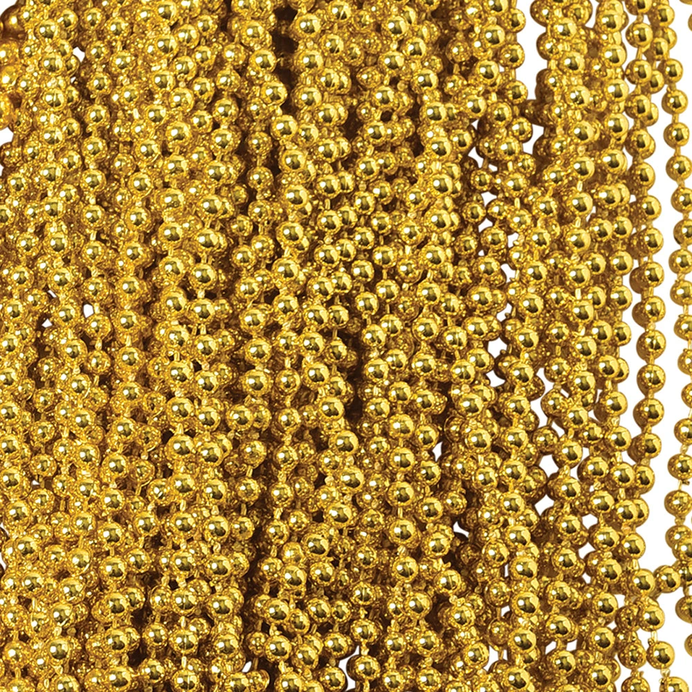 Mardi Gras Metallic Bead Necklaces (144 pieces) by CarnivalSource.com! Get the Mardi Gras party started with Mardi Gras beads. More beads for your money with this package. Each package contains 144 4mm beads perfect for large-scale Mardi Gras or Carnival Events. Looking for unique and fun wearables for Mardi Gras? We have a wide selection of costume accessories to make your Mardi Gras celebration a hit! Find the bling you need to make your Mardi Gras or Carnival costume a hit! Find more great items like this in our Mardi Gras Party Supplies category here at CarnivalSource.com. Add some sparkle to your Mardi Gras outfit with these metallic bead necklaces! Each necklace is 32 inches long and features 4mm beads in the traditional Mardi Gras colors of purple, gold, and green. These necklaces are made with no reground material and are plastic, so they are safe for kids ages 3 and up. Get 144 pieces in bulk packaging, perfect for large-scale celebrations. These necklaces are a seasonal item and ship from our Missouri warehouse within one business day. Shop CarnivalSource.com for more Mardi Gras party supplies and accessories.