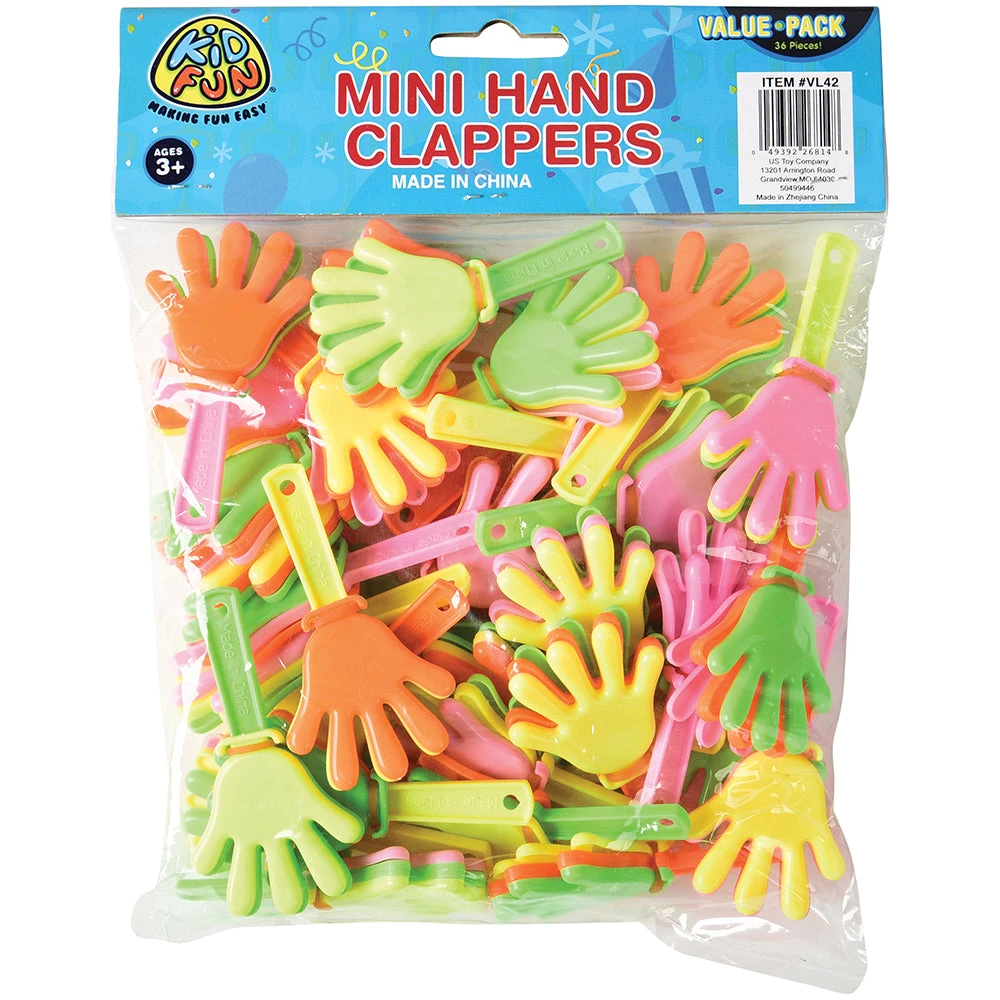 Mini Hand Clappers – 36 Pieces by CarnivalSource.com! Hand clappers are a great way to applaud a winning performance. Hand clappers are also a great giveaway at a football, basketball, soccer, or track event. Or add a hand clapper to a party favor bag for added excitement. 36 pieces per pack. Find more great items like this in our Party Noisemakers category here at CarnivalSource.com. Mini Hand Clappers are the perfect way to show your appreciation and excitement! Our 36 pieces come in a variety of assorted colors and measure 3 inches in length. Made of plastic, they provide a satisfying clap sound and are ideal for sports events, parties, and more. Ships from our Missouri warehouse in one business day. Get your Mini Hand Clappers today!