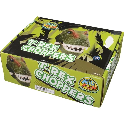 T-Rex Choppers (8ct Display) by CarnivalSource.com! Bring the fearsome T-Rex to your next themed party with these T-Rex Choppers. Wind the turner and let them loose, chomping their way across the floor and into the hearts of your little dinosaur lovers. A great party favor, these plastic action toys feature realistic coloring and design, giving your next event a prehistoric feel without traveling back in time. Find more great items like this in our Dinosaur Party Theme category here at CarnivalSource.com. This 8-count display of T-Rex Choppers is perfect for any dinosaur-themed party. Wind up the turner and watch as they scurry across the floor with realistic coloring and design. These action toys are sure to capture the hearts of your little ones. Ages 3 and up, each chopper measures 4.5″ Long and comes in two assorted colors. Ships from our Missouri warehouse within one business day. Get your T-Rex Choppers today!